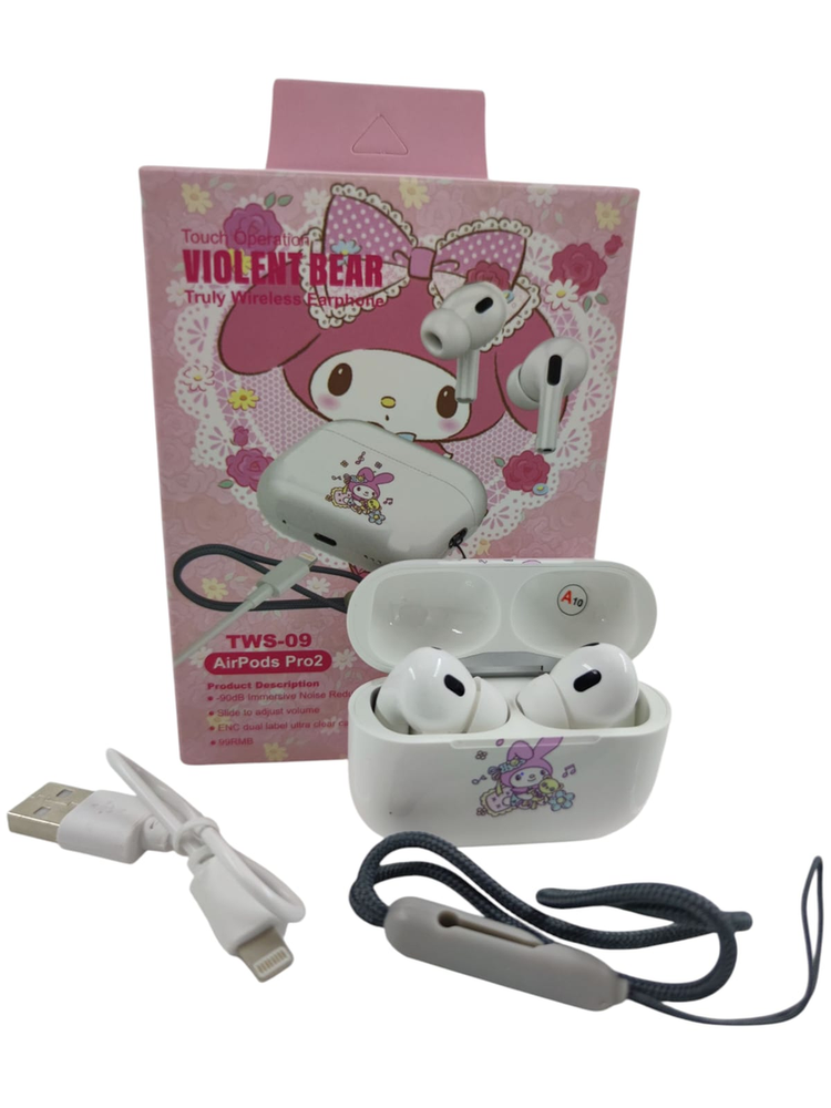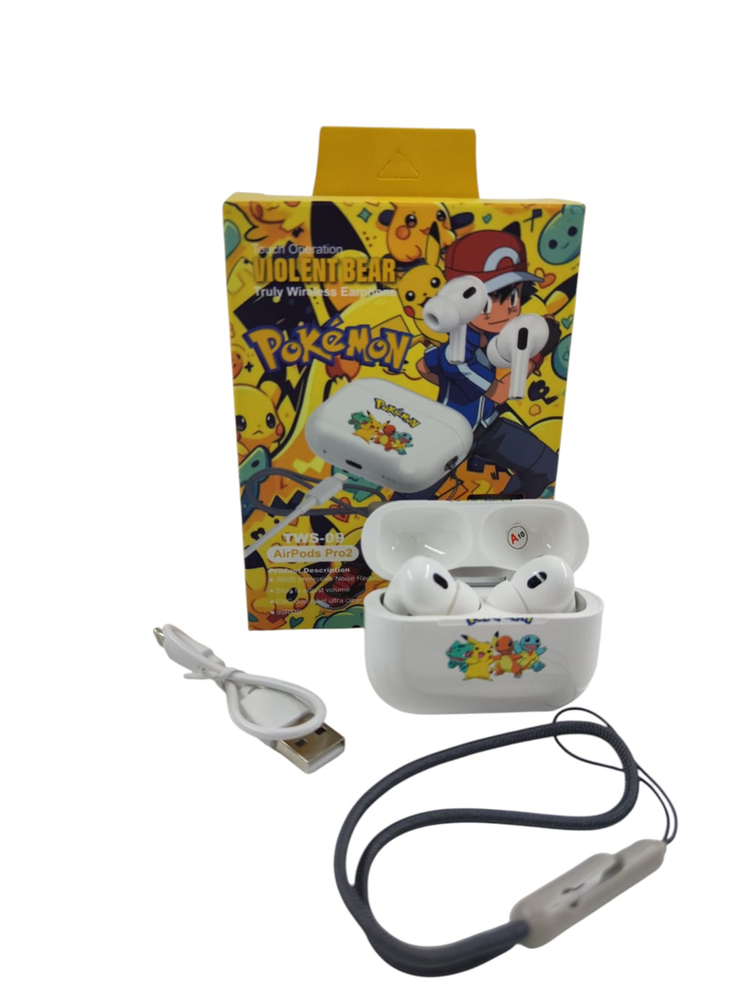 Varios diseños disponibles: diferentes dibujos y estilos en la caja y en el estuche, perfectos para coleccionar o regalar. Conexión Bluetooth inalámbrica, compatible con la mayoría de celulares y tablets. Estuche de carga compacto con ilustraciones a color. Sonido estéreo y micrófono integrado para llamadas. Incluye cable de carga y correa de mano para llevar el estuche con comodidad. Una opción divertida y llamativa para escuchar música, jugar o ver videos con auriculares de diseño temático.