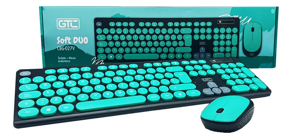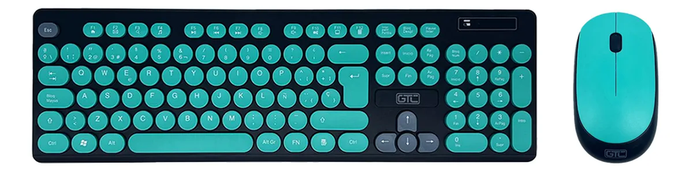 Kit Combo Teclado Y Mouse Inalambrico Gtc Cbg-027 Usb Optico Mouse Verde Claro Agua