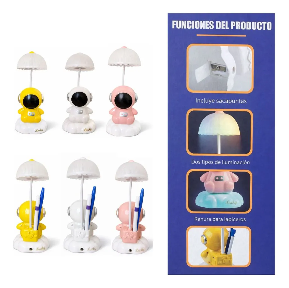 Velador Con Sacapuntas Y Portalápices Astronauta Para Niños