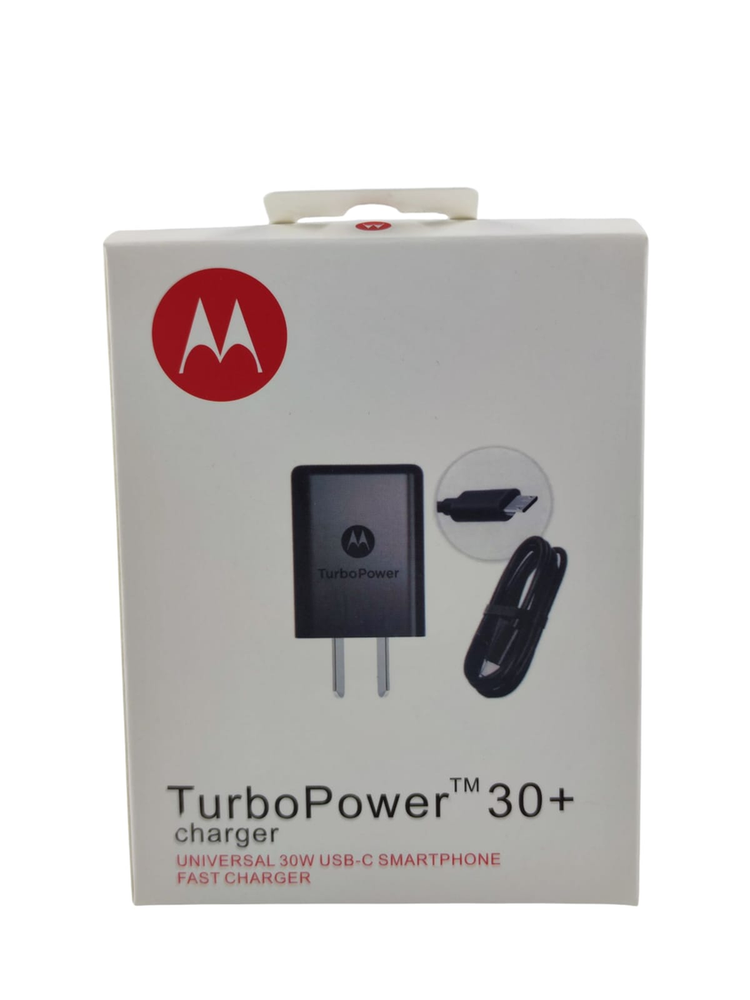Cargador Motorola TurboPower 30+ con carga rápida de 30W, ideal para smartphones USB-MICRO. Características principales: Potencia 30W fast charger. Salida USB-MICRO-V8 Incluye cable USB-MICRO. Diseño compacto y seguro para uso diario, casa u oficina.