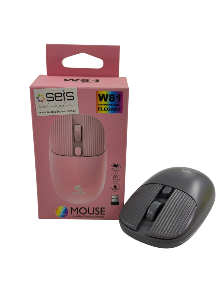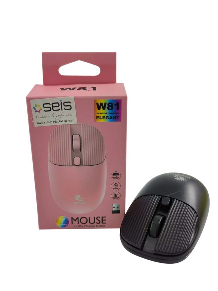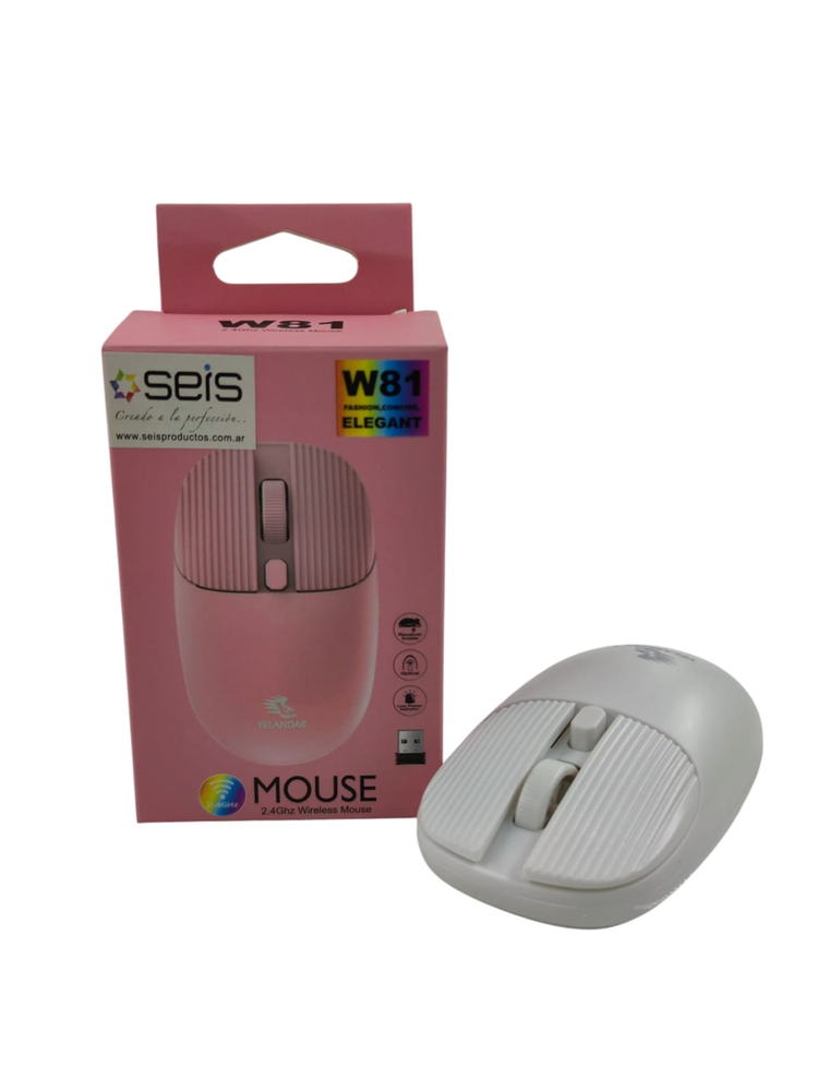Mouse Inalámbrico Yelandar W81 - Diseño Texturizado y Elegante Dale un toque de estilo a tu escritorio con el Mouse W81. Su diseño único con botones texturizados y acabado mate lo diferencia de los mouses tradicionales. Es compacto, cómodo y está disponible en colores modernos. Conexión: Inalámbrica 2.4GHz (Libertad de movimiento hasta 10m). Diseño Único: Superficie con relieve en los botones para un mejor agarre y estilo. Colores Disponibles: Rosa pastel, Blanco y Negro. Funcionalidad: Sensor óptico de precisión y rueda de desplazamiento suave. Instalación: Receptor USB Plug & Play (conectar y usar). *Alimentación: A pilas (bajo consumo de energía).