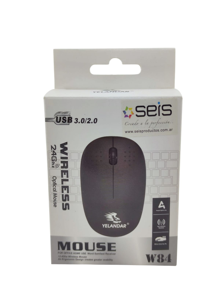 Mouse Inalámbrico SEIS W84 - Chip Agilent de Alta Precisión Diseñado para la oficina y el hogar, el modelo W84 se destaca por su fiabilidad técnica. Incorpora un Chip Original Agilent, lo que garantiza un seguimiento más estable y preciso que los mouses genéricos estándar. Su superficie texturizada ofrece un agarre firme y cómodo. Tecnología Superior: Equipado con Chip Agilent para mayor estabilidad. Conexión: Inalámbrica 2.4GHz con alcance de hasta 10 metros. Durabilidad: Teclas probadas para millones de clics (Million times key life). Receptor: Nano USB ultra pequeño ("Connect & Forget"). Diseño: Ergonómico en color negro mate con textura punteada en los botones para mejor tacto. *Compatibilidad: USB 2.0 y 3.0 (Windows/Mac).