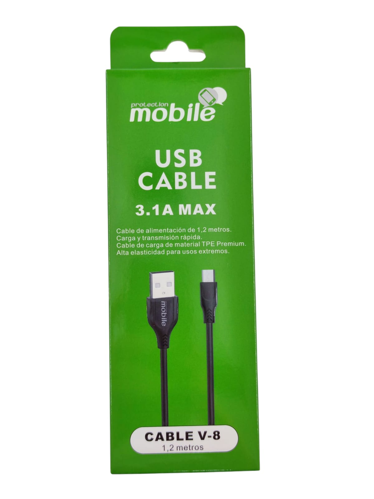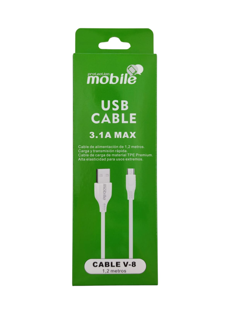 Cable de Datos y Carga Rápida V8 (Micro USB) - 3.1A - 1.2 Metros Cable de alta resistencia fabricado en TPE Premium. Soporta carga rápida de hasta 3.1 Amperios y transmisión de datos segura. Conector: V8 (Micro USB). Compatible con Samsung, Motorola, Huawei (modelos anteriores), Parlantes y Baterías portátiles. Potencia: 3.1A MAX (Soporta cargadores de carga rápida). Largo: 1.2 Metros (Medida ideal, ni muy corto ni muy largo). Material: TPE de alta elasticidad (Resistente a tirones y enredos). *Colores: Disponible en Blanco y Negro.