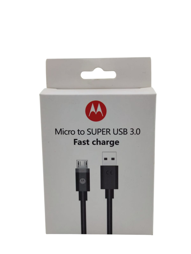 Cable motorola Micro -USB a 3.0 - Fast Charge Cable de alto rendimiento para carga y sincronización de datos. Marca: Samsung (Packaging Box). Tipo de ficha: Micro USB (Compatible con todos los Android V8). Función: Carga Rápida + Datos. Color: Negro. *Presentación: En caja cerrada.