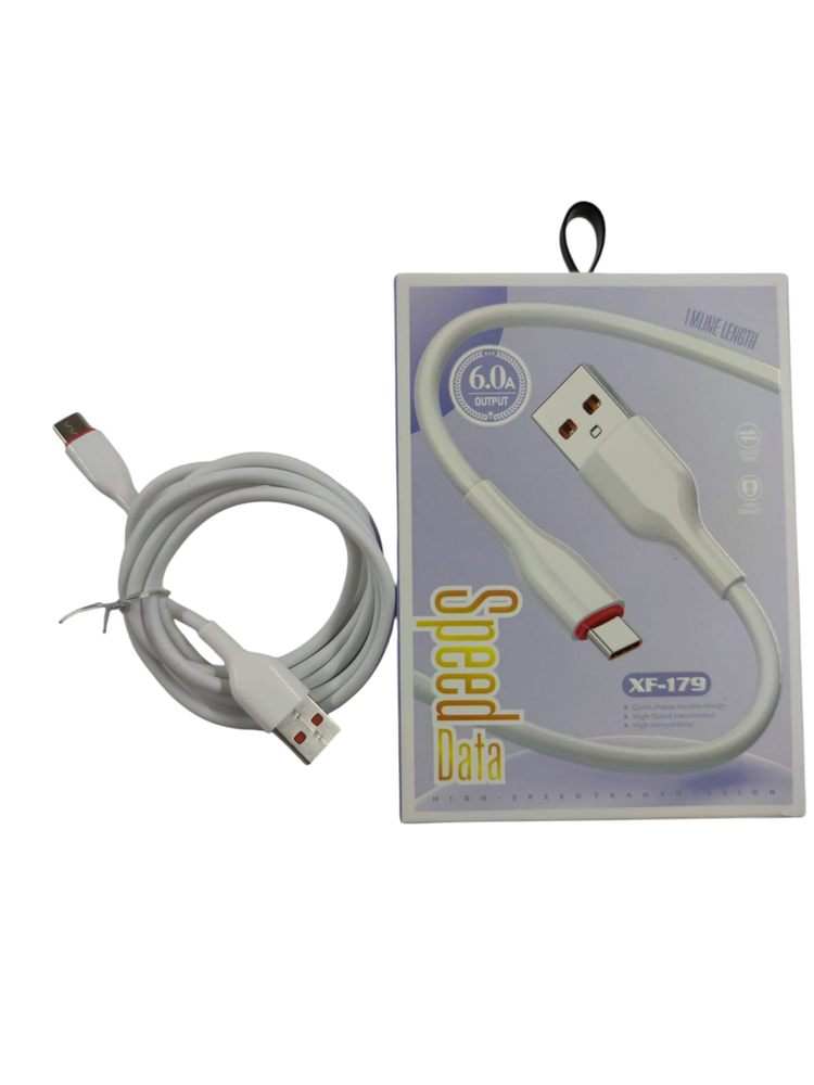 Cable Datos y Carga Tipo C - 6.0A High Power Cable USB-C de alto rendimiento para usuarios exigentes. Soporta corrientes altas para reducir tiempos de carga. Modelo: XF-179 Speed Data. Capacidad: 6.0 Amperios (Max). Ficha: Tipo C (Reversible). Longitud: 1 metro. Material: Silicona/TPE de alta densidad. *Diseño: Conectores reforzados.