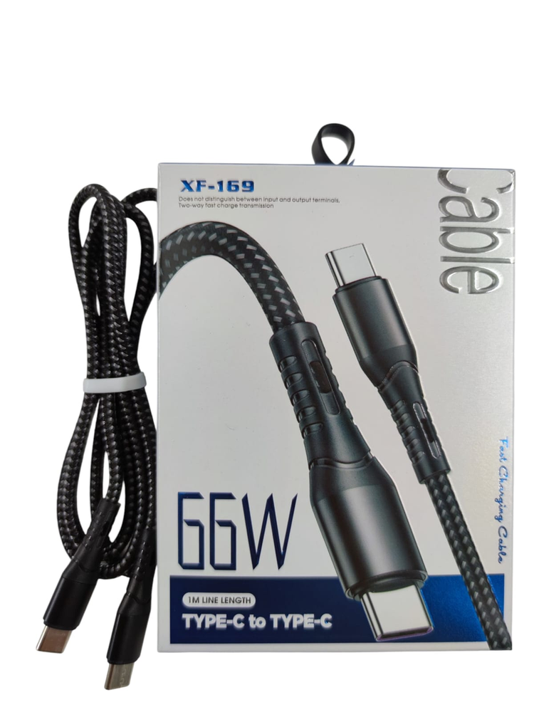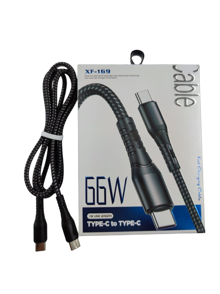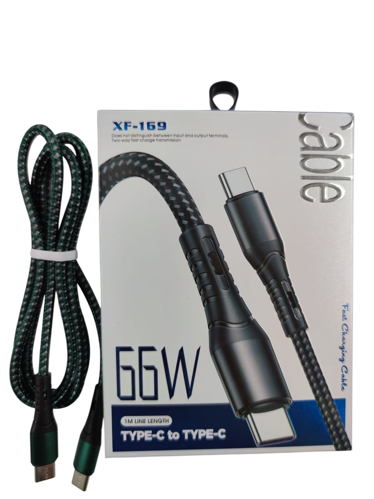 Cable Tipo C a Tipo C - 66W Potencia Extrema - Trenzado Reforzado Prepárate para la carga más rápida. Este cable modelo XF-169 está diseñado para conectar tu dispositivo directamente a un cargador de pared con salida Tipo C (PD). Con una capacidad de 66W, es mucho más potente que un cable estándar. Es ideal para smartphones de gama alta (Samsung S21/S22/S23, Xiaomi Turbo Charge), iPads y Laptops que requieran carga vía USB-C. Características Premium: Conexión: Tipo C a Tipo C (Requiere cargador con entrada chica/ovalada). Potencia: 66W (Soporta Power Delivery y Super Fast Charging). Material: Trenzado de Nylon bicolor (Verde/Negro) ultra resistente a cortes y tirones. Diseño: Conectores con cuello reforzado para evitar roturas. *Largo: 1 Metro.