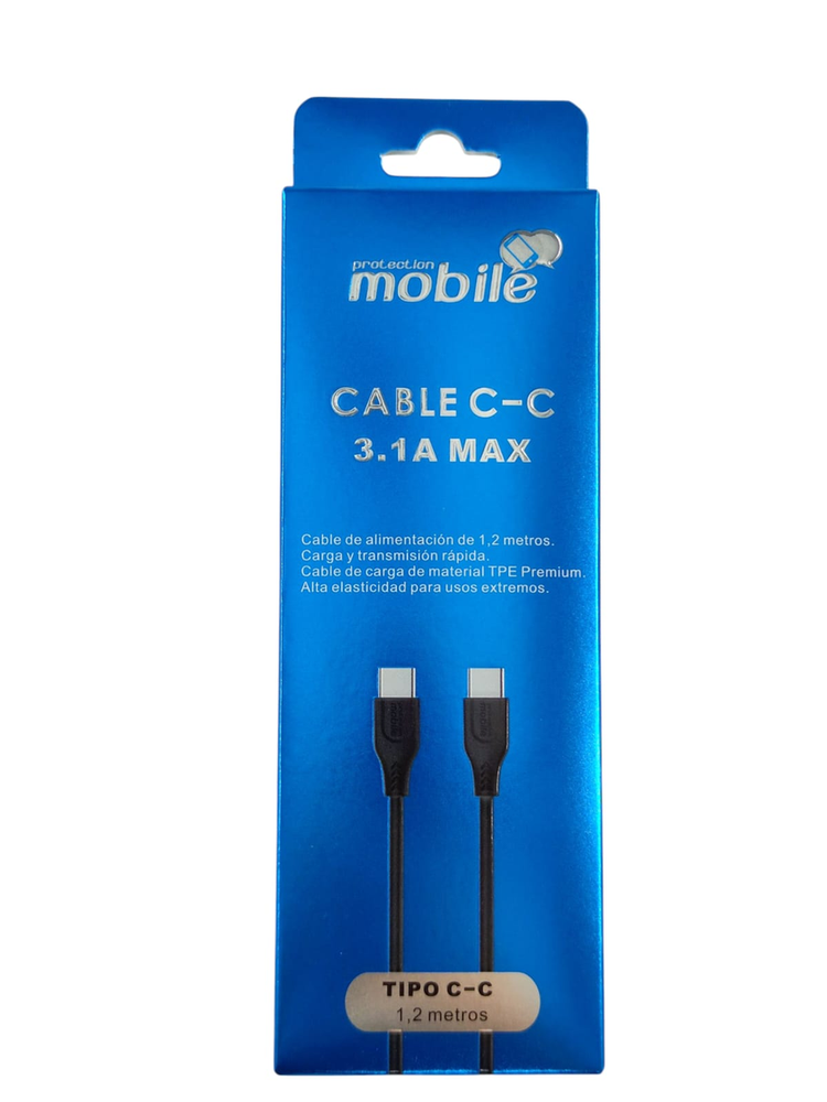 Cable Datos y Carga Tipo C a Tipo C - 3.1A - 1.2 Metros Cable de conexión moderna con doble punta Tipo C. Diseñado para utilizarse con los nuevos cargadores de pared "Power Delivery" (PD) o para conectar tu celular directamente a una Notebook con puerto USB-C. Al igual que toda la línea Protection Mobile, está fabricado en TPE Premium, lo que garantiza flexibilidad y resistencia ante el uso diario. Su largo de 1.2 metros te da un extra de comodidad comparado con los cables estándar de un metro. Características: Conexión: Tipo C a Tipo C (Requiere cargador PD). Potencia: 3.1A Max (Carga rápida eficiente). Largo: 1.2 Metros (20cm más largo que el estándar). Material: Goma TPE de alta elasticidad. Compatibilidad: Samsung S20/S21/S22/S23, iPhone 15, Motorola Edge y nuevos Moto G.